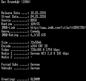 | FiLENAME: | Der.Brummbaer.German.REMASTERED.1986.AC3.BDRip.x264-SPiCY.mkv |