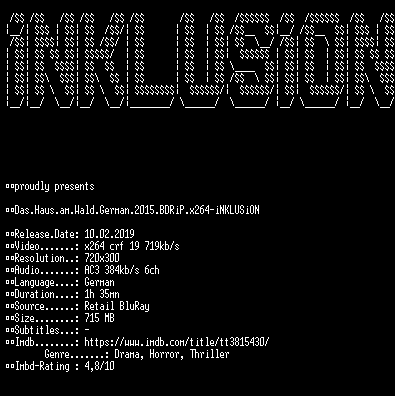 | FiLENAME: | Das.Haus.am.Wald.German.2015.BDRiP.x264-iNKLUSiON.mkv |