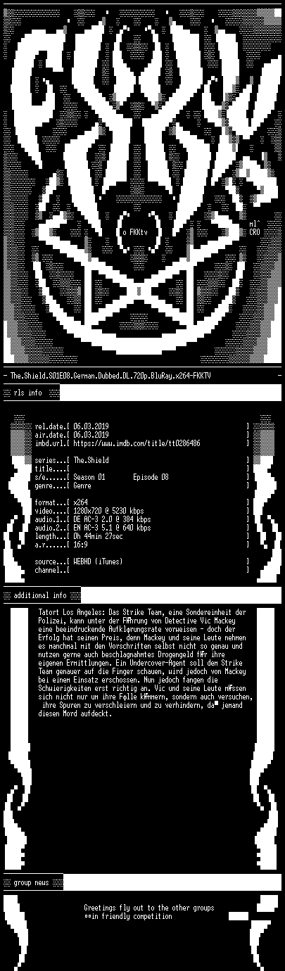 | FiLENAME: | The.Shield.S01E08.German.Dubbed.DL.720p.BluRay.x264-FKKTV.mkv |