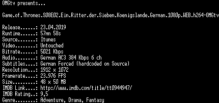 | FiLENAME: | Game.of.Thrones.S08E02.Ein.Ritter.der.Sieben.Koenigslande.German.1080p.WEB.h264-OMGtv.mkv |