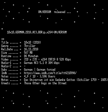 | FiLENAME: | 10x10.GERMAN.2018.AC3.BDRip.x264-UNiVERSUM.mkv |