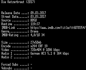 | FiLENAME: | Die.Ketzerbraut.German.2017.AC3.BDRip.x264-SPiCY.mkv |