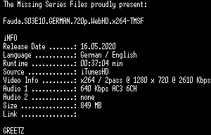 | FiLENAME: | Fauda.S03E10.GERMAN.720p.WebHD.x264-TMSF.mkv |