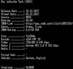 | FiLENAME: | Das.indische.Tuch.German.REMASTERED.1963.AC3.BDRip.x264-SPiCY.mkv |