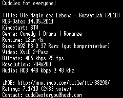 | FiLENAME: | Guzaarish.German.2010.AC3.DVDRip.XviD-CUDDLES.avi |