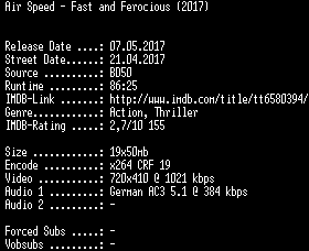 | FiLENAME: | Air.Speed.Fast.and.Ferocious.German.2017.AC3.BDRip.x264-SPiCY.mkv |