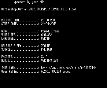 | FiLENAME: | Barbershop (2002) [GER WS DVD].avi |