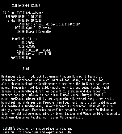 | FiLENAME: | Schwerkraft (2009) [GER-dts 720p BD].mkv |