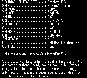 | FiLENAME: | The.Slayer.1982.DVDRip.XViD-RPS.avi |