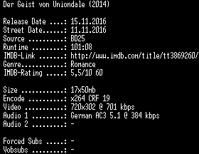 | FiLENAME: | Der.Geist.von.Uniondale.German.2014.AC3.BDRip.x264-SPiCY.mkv |