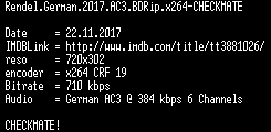 | FiLENAME: | Rendel.German.2017.AC3.BDRip.x264-CHECKMATE.mkv |