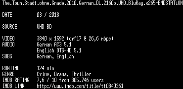| FiLENAME: | The.Town.Stadt.ohne.Gnade.2010.German.DL.2160p.UHD.BluRay.x265-ENDSTATiON.mkv |