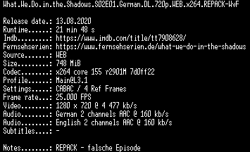 | FiLENAME: | What.We.Do.in.the.Shadows.S02E01.German.DL.720p.WEB.x264.REPACK-WvF.mkv |