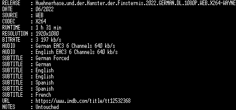 | FiLENAME: | Huehnerhase.und.der.Hamster.der.Finsternis.2022.GERMAN.DL.1080P.WEB.X264-WAYNE.mkv |