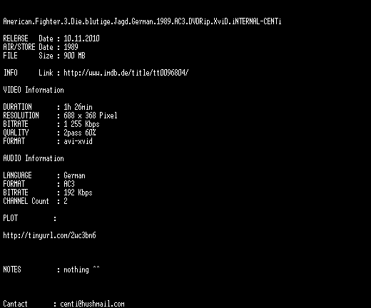| FiLENAME: | American.Fighter.3.Die.blutige.Jagd.German.1989.AC3.DVDRip.XviD.iNTERNAL-CENTi.avi |