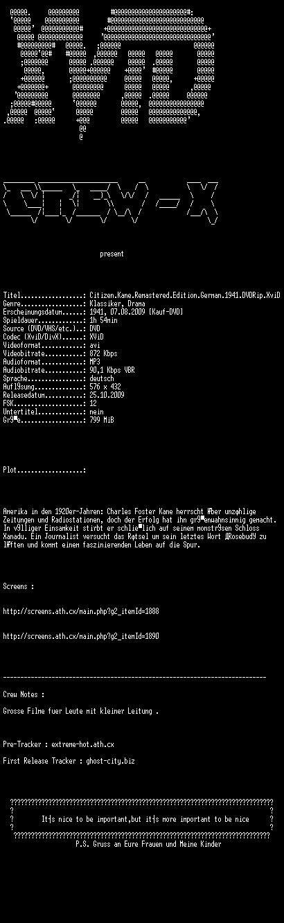 | FiLENAME: | 036.Citizen.Kane.Remastered.Edition.German.1941.DVDRip.XviD.avi |