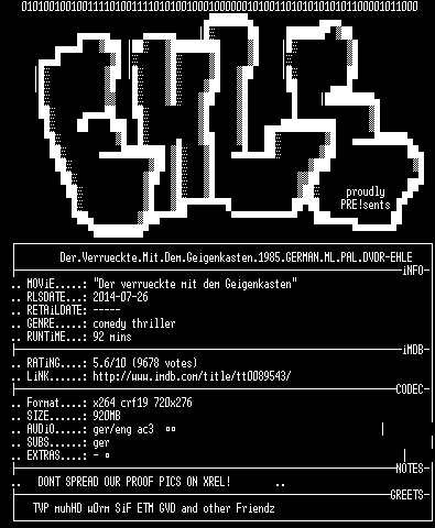 | FiLENAME: | Der.Verrueckte.Mit.Dem.Geigenkasten.1985.German.DVDRiP.x264-EHLE.mkv |
