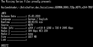 | FiLENAME: | Auslandskader.-.Botschafter.des.Sozialismus.GERMAN.DOKU.720p.HDTV.x264-TMSF.mkv |