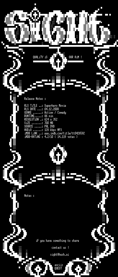 | FiLENAME: | Superhero.Movie.2008.German.DVDRiP.XViD-SiGHT.avi |