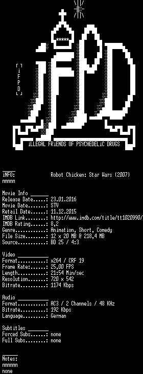 | FiLENAME: | Robot.Chicken.Star.Wars.German.2007.AC3.BDRiP.x264-iFPD.mkv |