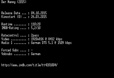 | FiLENAME: | Der.Nanny.2015.German.DTS.1080p.BluRay.x264-EXQUiSiTE.mkv |