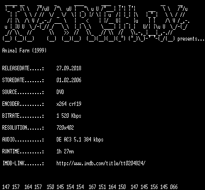 | FiLENAME: | Animal.Farm.1999.German.DVDRip.x264.iNTERNAL-TVARCHiV.mkv |