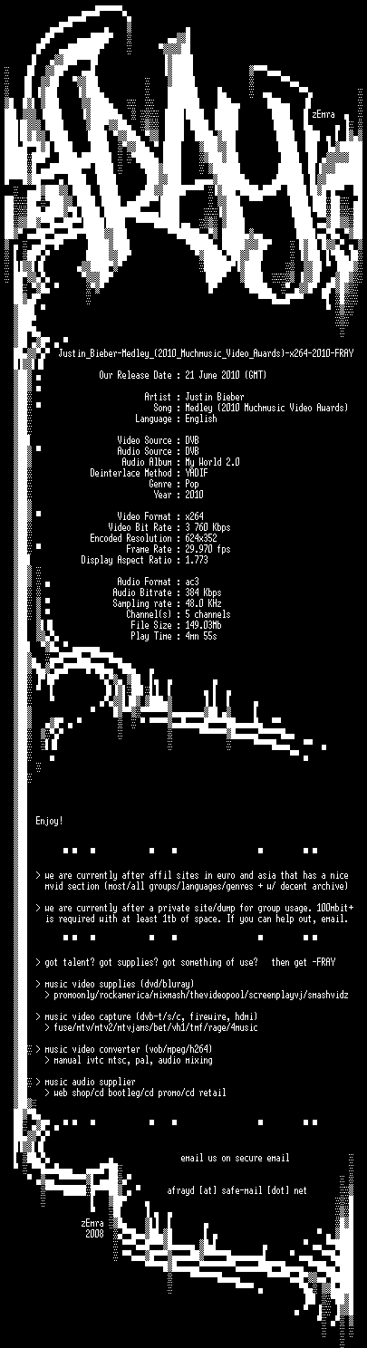 | FiLENAME: | Justin_Bieber-Medley_(2010_Muchmusic_Video_Awards)-x264-2010-FRAY.mkv |