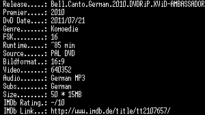 | FiLENAME: | Bell.Canto.German.2010.DVDRiP.XViD-AMBASSADOR.avi |