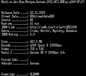 | FiLENAME: | Mord.in.der.Rue.Morgue.German.1932.AC3.BDRip.x264-SPiCY.mkv |