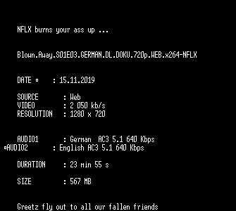 | FiLENAME: | Blown.Away.S01E03.GERMAN.DL.DOKU.720p.WEB.x264-NFLX.mkv |