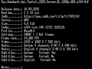 | FiLENAME: | Das.Handwerk.des.Teufels.2020.German.DL.1080p.WEB.x264-WvF.mkv |