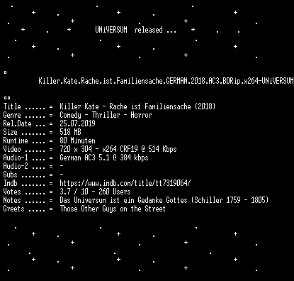 | FiLENAME: | Killer.Kate.Rache.ist.Familiensache.GERMAN.2018.AC3.BDRip.x264-UNiVERSUM.mkv |