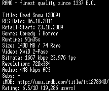 | FiLENAME: | Dead.Snow.German.2009.AC3.BDRiP.XviD.iNTERNAL-RANO.avi |