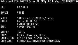 | FiLENAME: | Robin.Hood.2010.UNRATED.German.DL.2160p.UHD.BluRay.x265-ENDSTATiON.mkv |