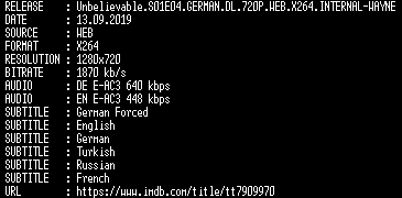 | FiLENAME: | Unbelievable.S01E04.GERMAN.DL.720P.WEB.X264.INTERNAL-WAYNE.mkv |