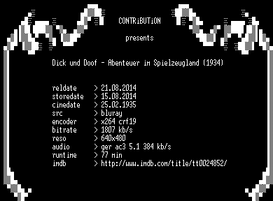 | FiLENAME: | Dick.und.Doof.Abenteuer.im.Spielzeugland.1934.German.BDRiP.x264-CONTRiBUTiON.mkv |