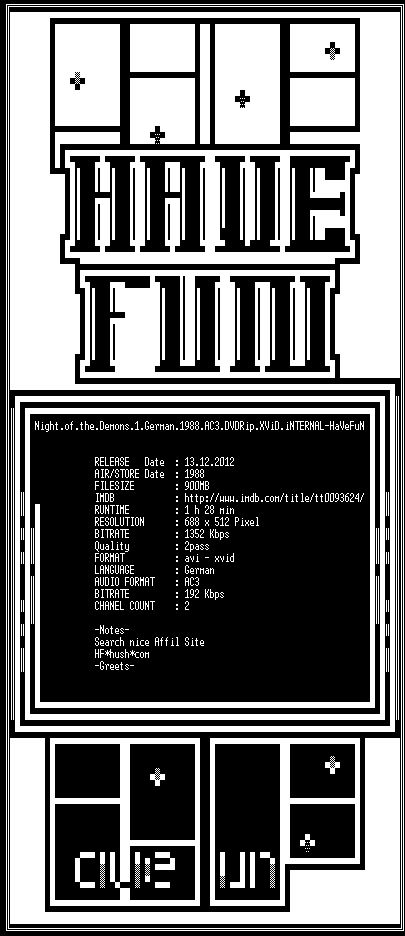 | FiLENAME: | Night.of.the.Demons.1.German.1988.AC3.DVDRip.XViD.iNTERNAL-HaVeFuN.avi |