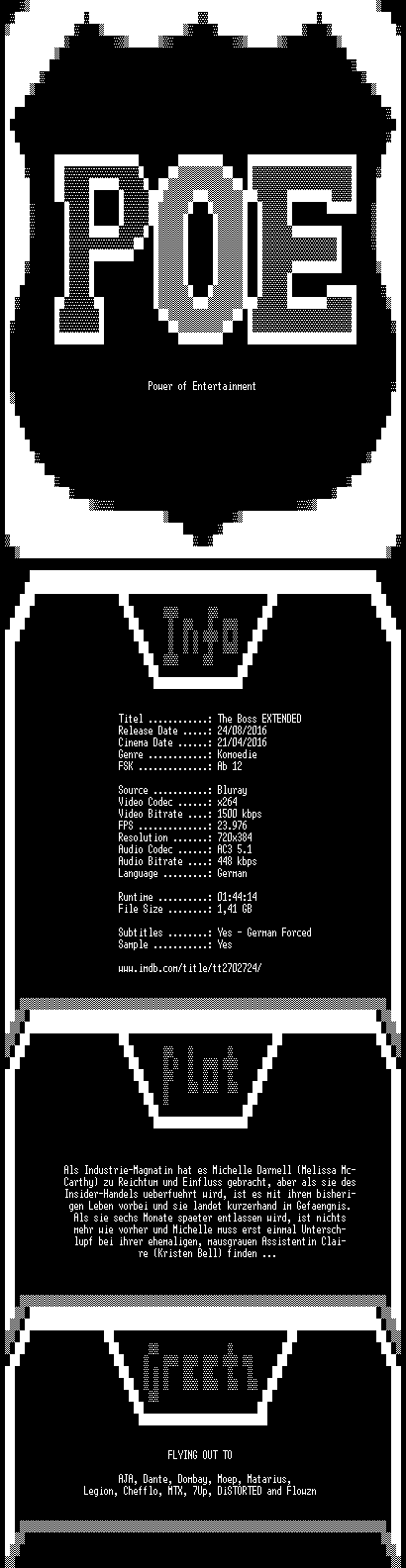 | FiLENAME: | The.Boss.EXTENDED.2016.BDRip.AC3.German.x264-POE.mkv |