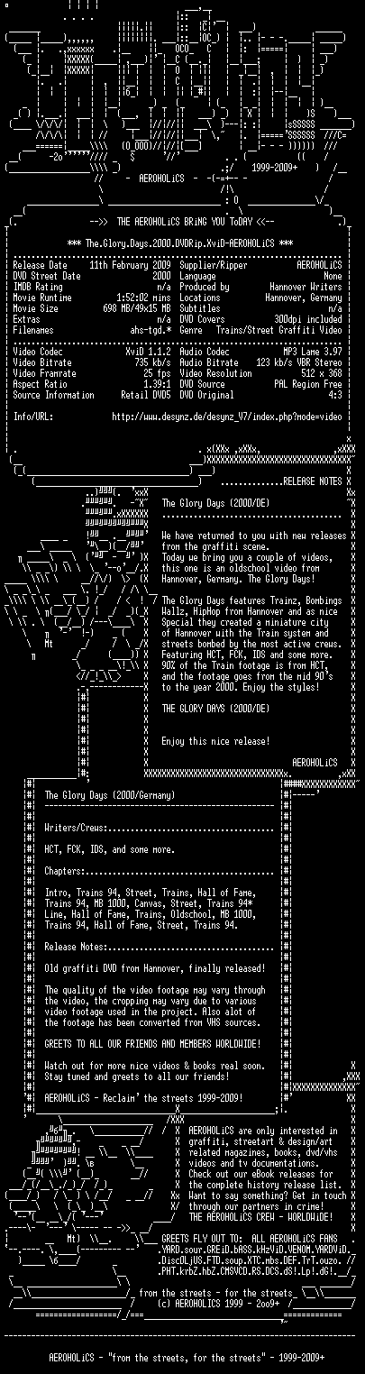 | FiLENAME: | The.Glory.Days.2000.DVDRip.XviD-AEROHOLiCS.avi |