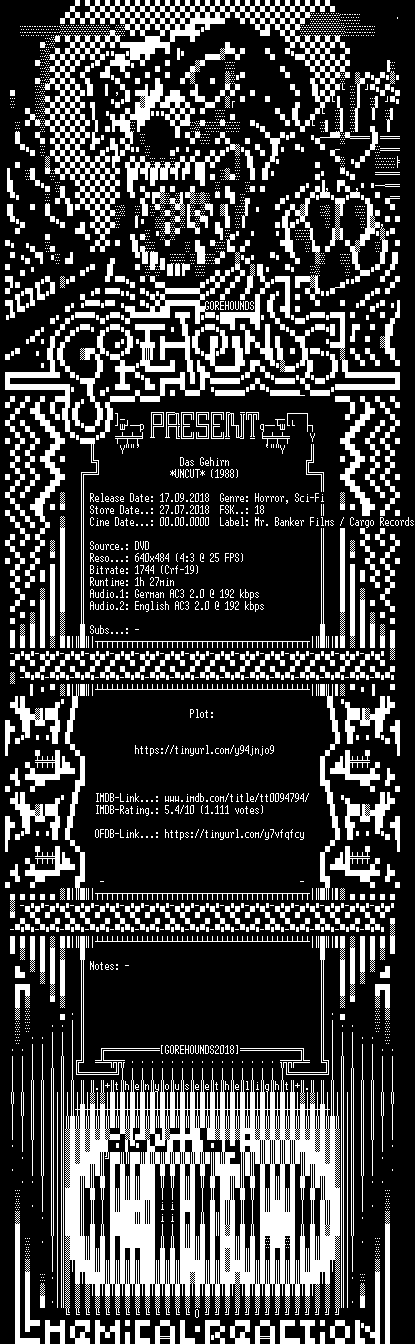 | FiLENAME: | Das.Gehirn.GERMAN.1988.DL.DVDRiP.x264-GOREHOUNDS.mkv |