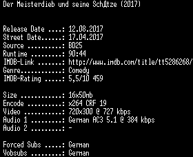 | FiLENAME: | Der.Meisterdieb.und.seine.Schaetze.German.2017.AC3.BDRip.x264-SPiCY.mkv |