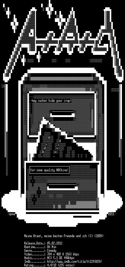 | FiLENAME: | Meine.Braut.meine.besten.Freunde.und.ich.German.2009.AC3.BDRip.XviD.INTERNAL-ARC.avi |