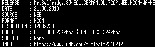 | FiLENAME: | Mr.Selfridge.S04E01.GERMAN.DL.720P.WEB.H264-WAYNE.mkv |