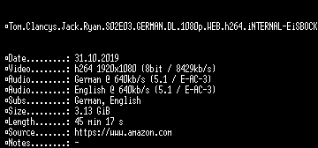 | FiLENAME: | Tom.Clancys.Jack.Ryan.S02E03.GERMAN.DL.1080p.WEB.h264.iNTERNAL-EiSBOCK.mkv |