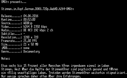 | FiLENAME: | Stimmen.im.Kopf.German.DOKU.720p.WebHD.h264-OMGtv.mkv |