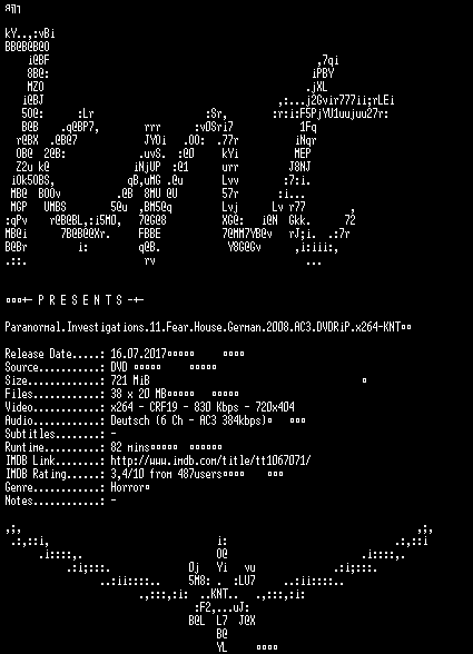 | FiLENAME: | Paranormal.Investigations.11.Fear.House.German.2008.AC3.DVDRiP.x264-KNT.mkv |