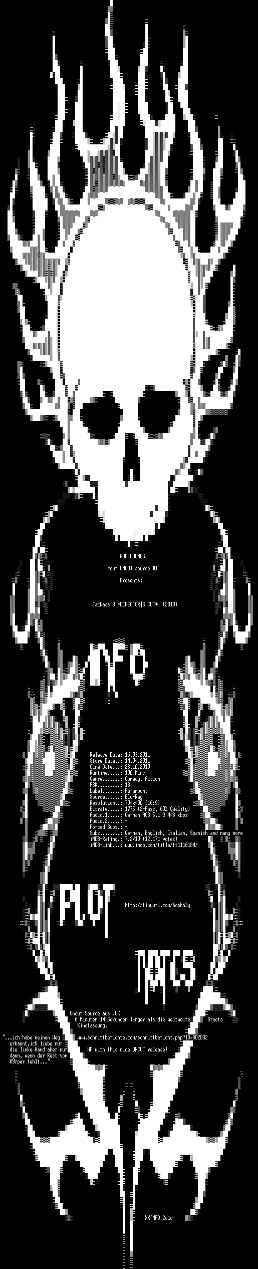 | FiLENAME: | Jackass.3.Directors.Cut.German.2010.AC3.BDRiP.XViD-GOREHOUNDS.avi |