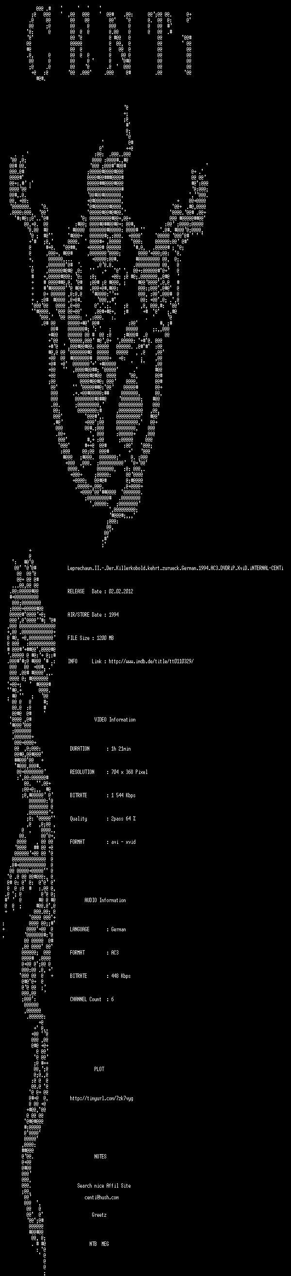 | FiLENAME: | Leprechaun.II.-.Der.Killerkobold.kehrt.zurueck.German.1994.AC3.DVDRiP.XviD.iNTERNAL-CENTi.avi |