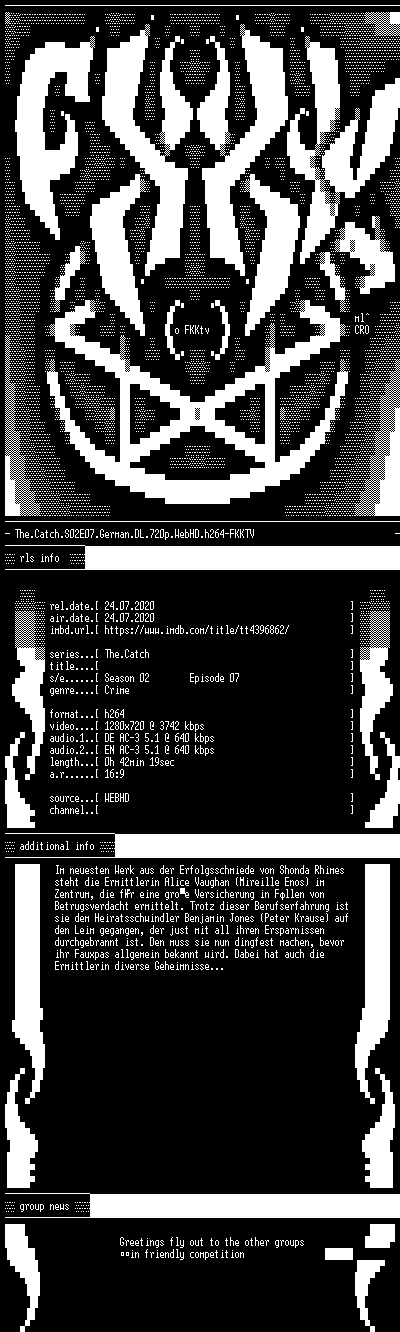| FiLENAME: | The.Catch.S02E07.German.DL.720p.WebHD.h264-FKKTV.mkv |