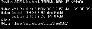 | FiLENAME: | The.Mick.S02E01.Das.Hotel.GERMAN.DL.1080p.WEB.H264-OCA.mkv |